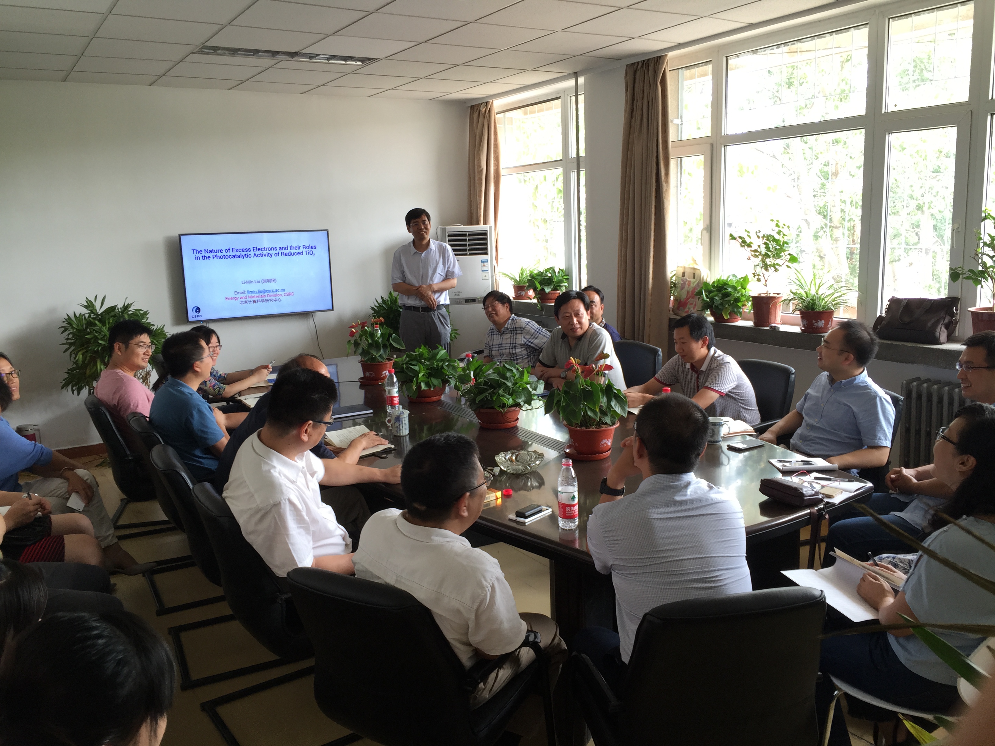 下午3:00,在材料学院会议室刘利民博士做了题目为“光催化材料的理论设计”的讲座,系统讲述了TiO2光催化实验体系中设计和计算中的搭建过程以及实验成果。罗俊教授就天津理工大学电镜中心发展规划做了讲解,我校近30余名师生参与了学术报告,并对两位教授的报告报以热烈掌声。报告结束后,各位老师就自己的研究方向、研究困惑及关键问题向两位优秀学者进行了学习和请教,并就今后北京计算中心和天津理工大学电镜中心参观交流达成了意向。副校长兼材料学院院长殷福星教授向两位学者的到来表示欢迎和感谢,并向其赠送了学校纪念品,同时希望今后利用京津冀区位优势和资源优势,在平台建设、科学研究等领域保持紧密关系,并对我校双一流建设产生积极影响。