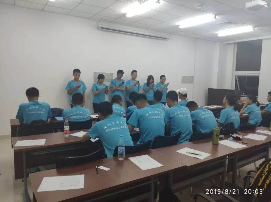 2019年8月21日上午8:30,yl23455永利集团材料学院2019级新生营员们在材料楼516齐聚。2019级辅导员贺荟文老师为营员们讲解新生开学事项。贺老师分析了入学初新生常见的心理状态:陌生、迷茫、消极。