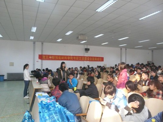 为了帮助大家理清考研的思路,扫除考研路上的各种障碍,材料学院团委于2013年11月23日下午一点在东院7D102举办了考研交流会活动。此次交流会有幸邀请到了已考上研究生的几位学长学姐,他们分别是:石慧君、夏玉倩、许锋、罗倩、渠朝义、张叶青和吕颖。