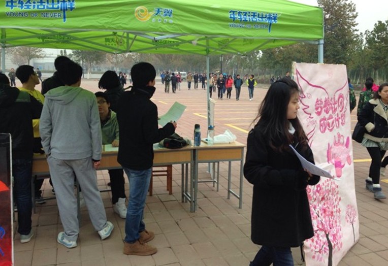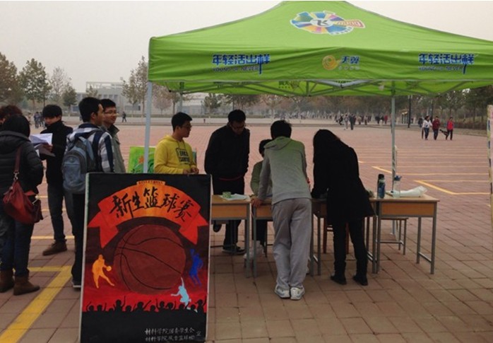 早晨10点,由材料学院学生会社团部主办的梦想社团成立计划活动正在紧张有序的进行,布置场地,搭建棚子,搬桌子摆画报。