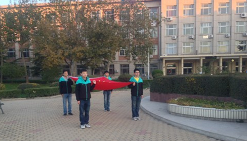 2013年11月4日星期一上午七点整,为发扬党员模范先进带头作用,激励大家爱党敬业,勤奋学习的好习惯,yl23455永利集团在东院举行了意义非凡的升旗仪式,参加仪式的有材料学院团委书记许海媚老师,辅导员陈亚洲、康学伟、、吕颖,除此之外,学生处的刘荣直老师也参与了此次升旗仪式。