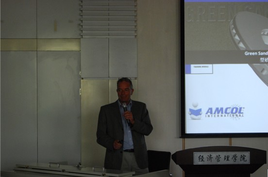 唯科公司亚太区技术经理Darren Colwell先生的报告共分三个部分:一是介绍了湿型砂铸造生产工艺和设备;二是湿型砂铸造中辅料的功能和应用(硅砂,膨润土,煤粉,淀粉等);三是湿型砂铸造中的砂测试。