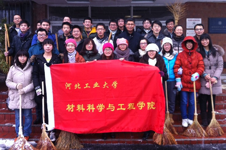 经历了一个上午,材料学院师生们和学校环卫人员一起努力美化校园,清扫道路,扫雪推道。最后,材料学院师生一起在北院材料楼门口前合影留念。参加扫雪的材料教师和学生都表示这次除雪活动很有意义,既增加了同事之间的感情,也让学生们真真践行了一次“努力学习十八大精神”的实践。