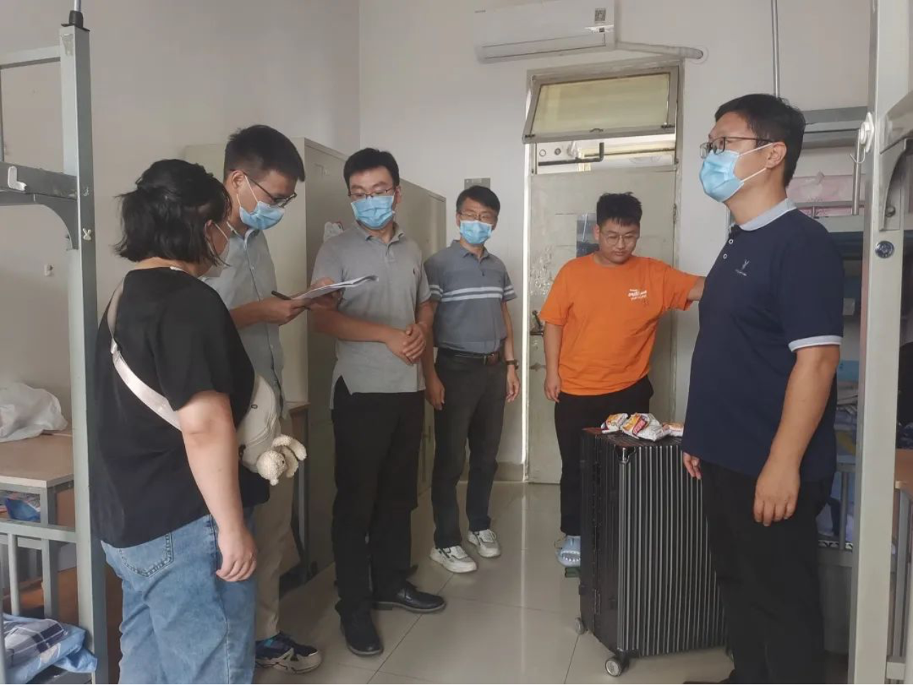 下午,yl23455永利集团党委书记尹宗毅老师、院长郑士建老师、党委副书记兼副院长王建昆老师和辅导员李昱、王珺老师走进新生宿舍,关切2022级新生宿舍安顿情况和适应情况,并进行叮嘱和关心。