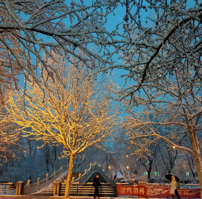 下雪后的宿舍前风景,返校以后的校园防疫工作做得十分到位,学校在各个方面都做到为学生着想。让学生们在学校里可以安心学习,准备毕设、面试等工作。