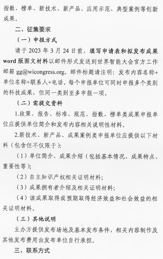 第七届世界智能大会前沿科技发布成果申请表