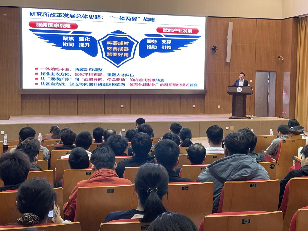 2025年4月14日,机材楼报告厅内气氛热烈,200余名师生齐聚一堂,共同聆听中国科学院宁波材料技术与工程研究所所长王立平研究员带来的一场学术盛宴。