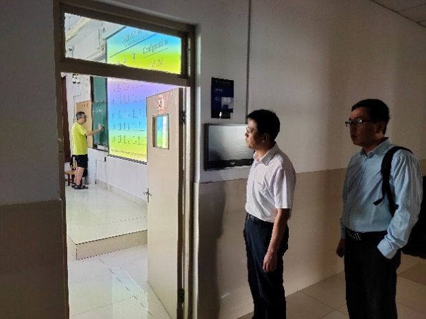 升旗仪式结束后学院领导班子和各年级辅导员前往课堂进行新学期教学检查。