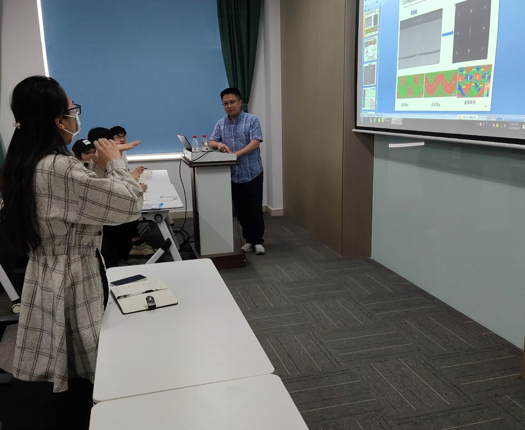 学院师生对唐云龙的研究成果表现出极大的兴趣,并与其就材料制备、原子尺度表征的具体细节及铁电材料的应用前景进行深入交流,唐云龙对每个提问都给予了详细的解答,报告在全场师生的热烈掌声中落下帷幕。