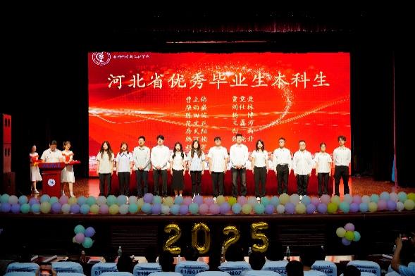 国歌响起,全体师生昂首挺胸,齐唱国歌。在庄严肃穆的气氛中,毕业典礼正式开始。典礼过程中,学院对优秀个人和集体进行表彰,充分发挥先进典型的示范带头作用,推动学院工作再上台阶。表彰的对象分别是河北省优秀毕业生、河北省三好学生、河北省优秀学生干部、文体之星个人奖和文体之星团队奖。