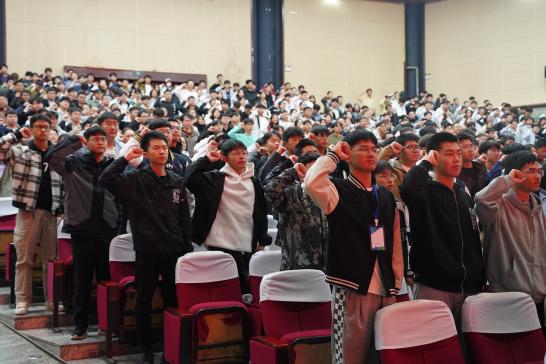 最后,全体新生举起右拳,庄严宣誓,字字铿锵的誓言回荡在礼堂,既是对未来大学生活的郑重约定,也展现了新一代材料学子的昂扬风貌。