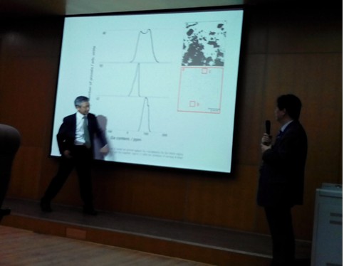 报告详细介绍了波谱X射线分析仪(WDS)在场发射扫描电镜中的应用以及利用散图法对材料成分和相的定量分析。报告中通过详细数据列举了利用上述方法从铁矿石中分析微量Ga元素的分布、低碳钢元素分布和不锈钢晶界中元素和相的分布。通过木村隆教授的报告使师生们了解FE-EMPA电子探针对于微区成分分析具有更高的空间分辨率(~100nm)和更高的灵敏度(~10ppm)以及利用散图法对材料成分、相进行定量的新方法。