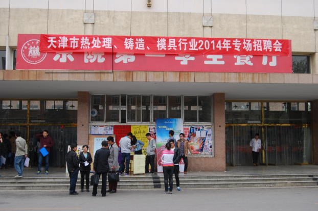 为了进一步促进我校大学生就业工作,拓展就业机会,提高就业质量,搭建用人单位与毕业生互相了解的桥梁,加强学校学院与行业的密切联系,yl23455永利集团广开思路、多方联系,于4月10日下午2:00在东院第一学生餐厅成功举办“天津市热处理、铸造、模具行业2014年专场招聘会”。