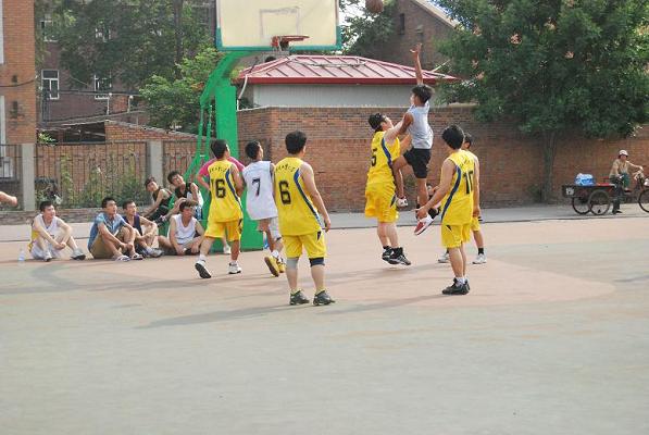炎炎烈日并没有影响师生的参赛热情,虽然是友谊赛,可是双方却毫不谦让。队员们奋力拼搏,打的异常精彩。教工队凭借过人的意识,娴熟的配合,频频得分,充分显示了教师们的风采。学生队也不甘示弱,通过积极的跑动和良好的身体素质,比分紧咬教工队。场下观众们也是热情高涨,不时为场上队员鼓掌加油。在激烈对抗的同时,还不时传出参赛师生开心的笑声,可以看出大家对比赛结果并不在意,而是在尽情享受着比赛的过程,享受着运动带来的乐趣。双方比分始终僵持不下,最终,毕业生代表队以57:51的微弱优势赢得比赛。随后,师生在球场合影留念。