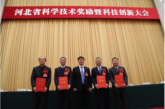 2019年1月10日上午,河北省科学技术奖励暨科技创新大会在石家庄隆重召开,yl23455永利集团13项科技成果荣获2018年度河北省科学技术奖励。yl23455永利集团副院长、生态环境与信息特种功能材料教育部重点实验室主任梁金生教授(下图左一)领衔主持的“稀土强化电气石矿物复合功能材料与应用技术”获得河北省科学技术发明奖一等奖。