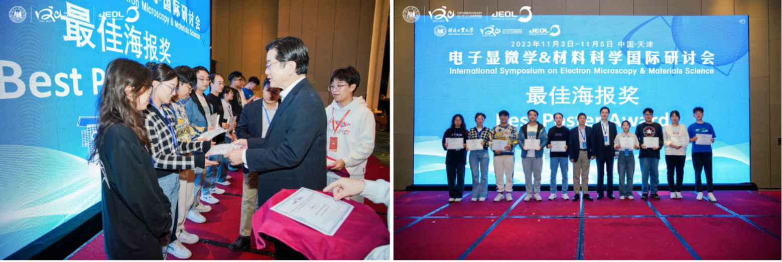 参会研究生以学术海报的形式积极参与到大会中。海报报告环节,参会专家投票选出最佳海报奖12人。日本东京大学Yuichi Ikuhara教授和中科院物理所马秀良研究员为获奖人颁发了最佳海报奖。