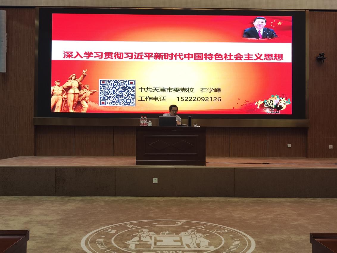 2023年5月26日下午2:00,学院邀请到中共天津市委党校教授石学峰以“深入学习贯彻习近平新时代中国特色社会主义思想”为主题,为我院预备党员、发展对象、积极分子代表200余人讲授党课。党课由学院正处级辅导员张雪莹主持。
