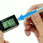 3.测试 将仪器置于被测工件表面,右手轻按仪器末端的释放按钮