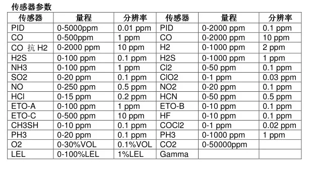 | 支持传感器 | Gamma/PID/LEL/TC/EC/NDIR |