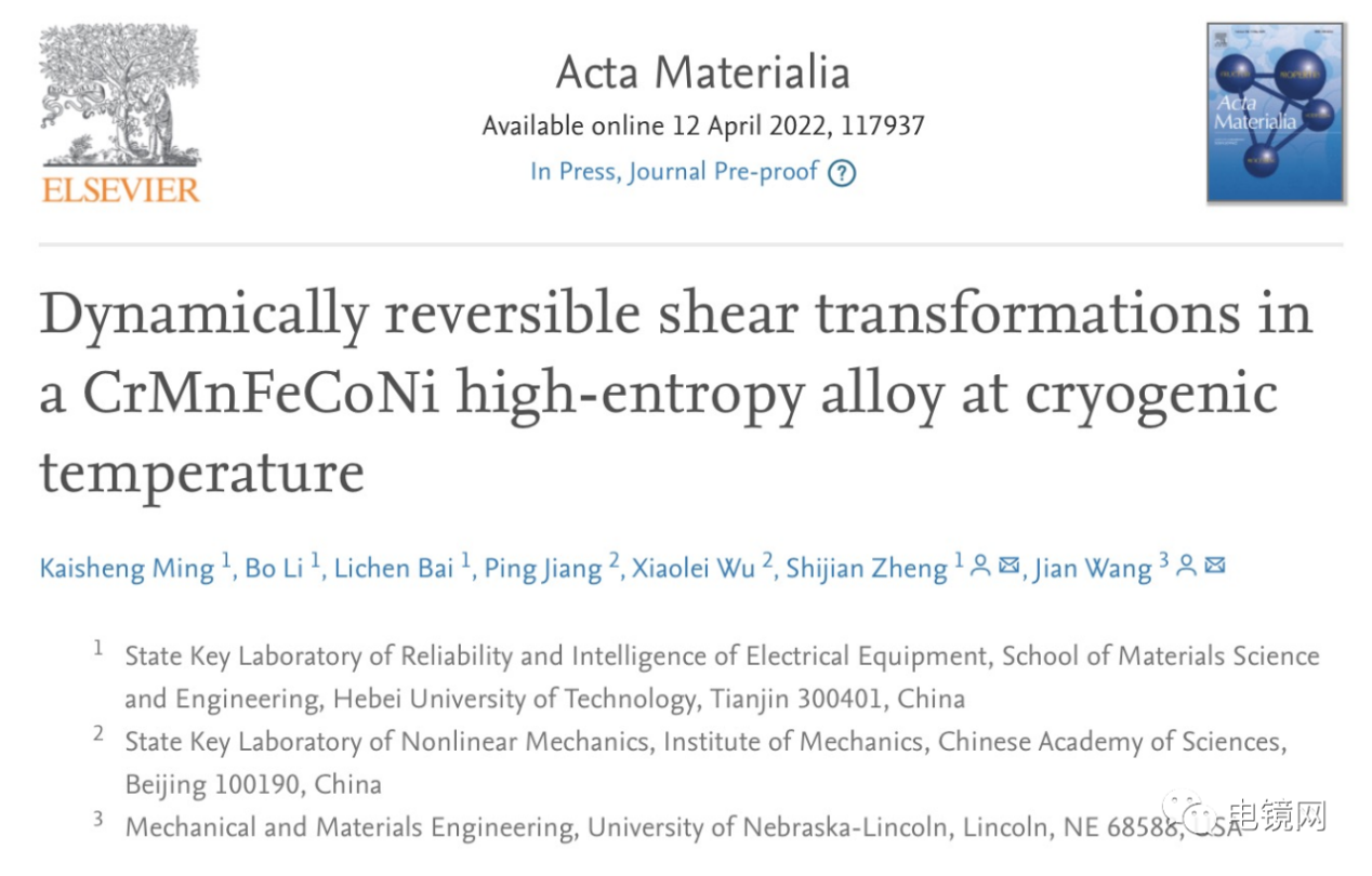 发现高熵合金在低温变形过程中的动态可逆剪切转变