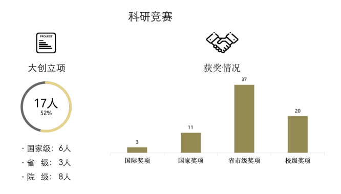 材料物理,研究物质的微观结构及宏观性质,出于对知识的渴望和好奇,他们从大一暑假开始,便陆续参与科研活动。大创项目共参与17人,美国大学生数学建模竞赛二等奖3人,ican等创新创业大赛国家级奖项2人,SCI二区论文2篇,各类学科竞赛国家级奖项9人次,省市级竞赛获奖37人次,校级竞赛获奖20人次。竞赛获奖,早已是家常便饭。