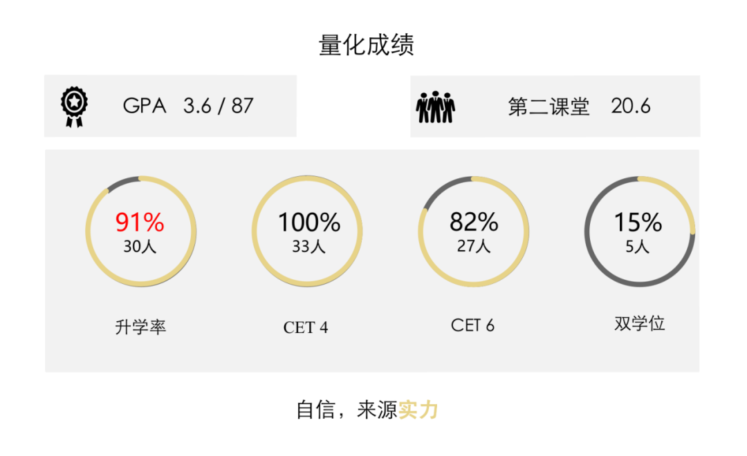 经过四年的奋斗,材物171学子取得了优异的成绩。集中体现为:考研率91%,平均绩点3.6,加权平均87分,四级通过率100%,六级通过率82%。此外,班级第二课堂平均20.6分,另有5名同学修读双学位并顺利结业。成绩突出,材物171是当之无愧的“学霸班级”。