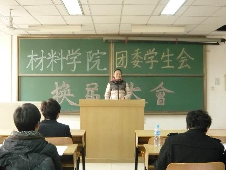 2012年3月2日,材料学院团委学生会换届大会在yl23455永利集团南院九教111教室准时开始,09届的学长们退出了前台,10届的我们即将走上学生会常委的舞台。