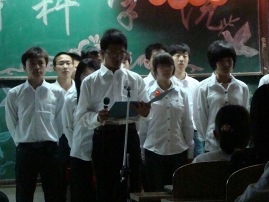 上午九时,活动正式开始,材料学院11级学生导员王建坤老师来到活动现场观看,活动以一段红歌会的主题视频作为开场,接下来,各个班级按照提前的抽签顺序分别进行视频播放,朗诵,话剧,合唱的节目。