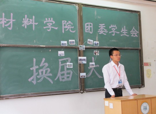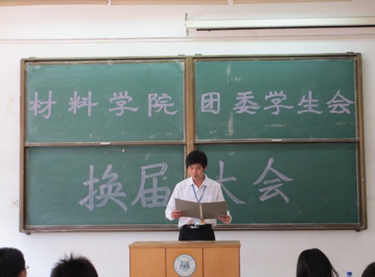 2012年6月17号上午九点整,材料学院学生会换届大会在北辰校区教学楼D102举行。