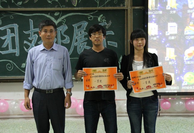 评比首先由10级团支部团支书代表的精彩发言拉开了帷幕,她那激扬的言语,坚定的承诺让我们看到了当代大学生的豪情与努力。依次精彩节目一一上演,材料C105班以团支部成员介绍配上诗歌朗诵,显得整齐有序,材料C102班以相声贯穿整个团支部展示,给人一种耳目一新的感觉,相声说的相当精湛,句句掷地有声。材料C108班以多媒体展示配上活动的再现,让人如临他们活动的现场,有声有色。材料102班以青春的蜕变为主线,展现了班级为同学深陷网游而展开的各种帮助,寓意班级的团结奋进。材料C104班,以班级成员介绍展开了团支部评比,期间配有舞蹈歌声,展现班级风采。材料C101班以多媒体衬托,展现班级人文色彩,每一节都伴有舞蹈和歌声交响辉映,特别是江南style,让整场都Hold不住了。下半场,材料C106班以材料的发展史,给人一种荡气回肠的感觉。材料105的闪耀青春颁奖典礼,配上各种节目展示,这个环节大气有序,独具风格。材料C103以中国好声音为模板,将班级准备的新颖的节目一一展现出来,整场有序井然。最后出场的材料C107班,又是江南style的疯狂,不过最具风格的还是女生独舞,赢来了场上的阵阵掌声。