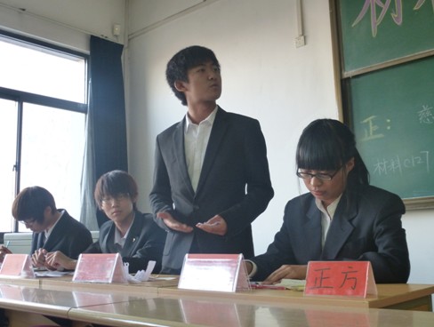且看这一场由正方材料C123与反方无机121班利弊交锋的辩论。 正方从“经济全球化的文化交流”、“异国文化的优秀性”和“批判的接受态度”三方面阐明了自己的观点,反方也毫不示弱地从“异国文化的入侵性、肤浅性“和”地域的差异性“等角度驳斥了正方的观点。