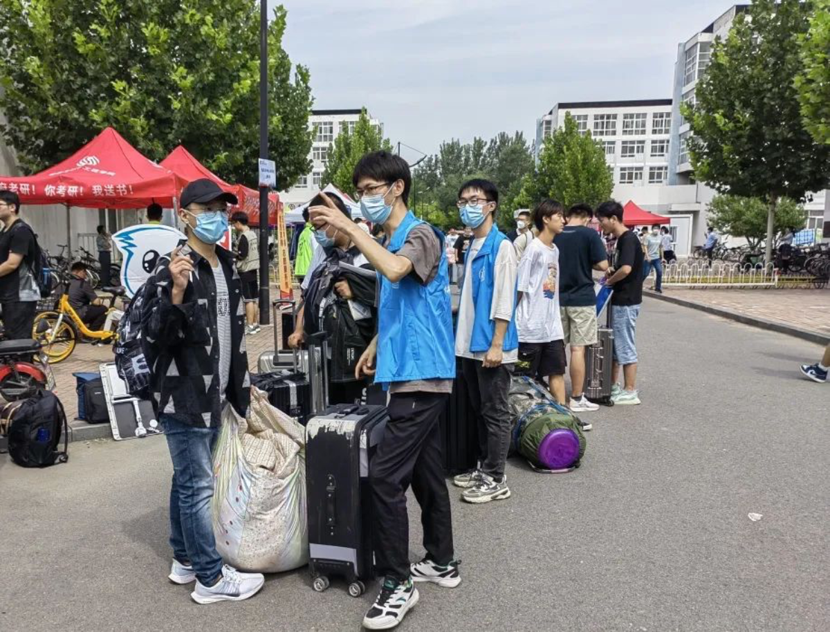还有热心的志愿者们,他们秉持“奉献、友爱、互助、进步”的志愿者精神,不怕苦、不怕累,帮助新生运送行李,穿梭于各个宿舍之间,从楼上到楼下,到处都是他们忙碌的身影。