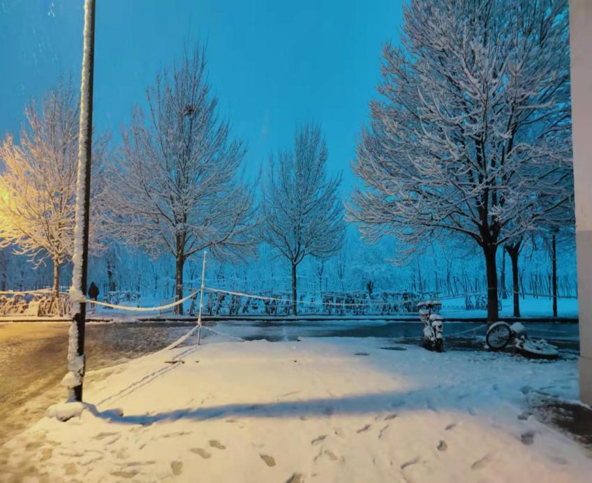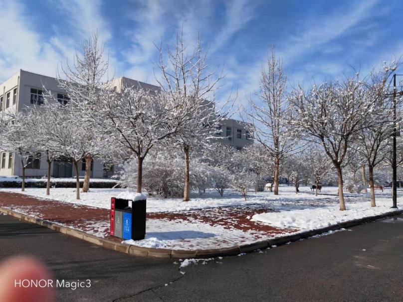 下雪后的宿舍前风景,返校以后的校园防疫工作做得十分到位,学校在各个方面都做到为学生着想。让学生们在学校里可以安心学习,准备毕设、面试等工作。