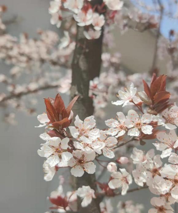 一场大雪让疫情中的人们更加沉闷。雪化的第一天,无意走到了钟楼附近,看到了在严寒中肚子开放的桃花,雪白而圣洁,传递着春天的信息。希望这桃花能给人们带来希望,相信疫情总有结束的一天。