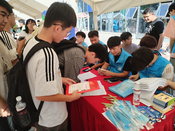 清晨的学院报到处早已一片繁忙,为了帮助同学们迅速顺利地完成报道工作,材料学院的学长学姐以及部分新生组成志愿小队,在每一个环节熟练高效地为新生办理报道手续。校领导、学院领导、辅导员老师也早早来到现场,与家长同学们亲切交流,指引报到流程、解答疑问。