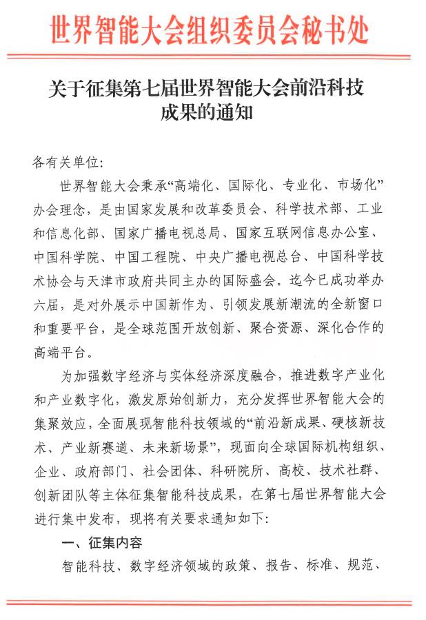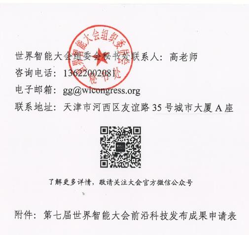 第七届世界智能大会前沿科技发布成果申请表