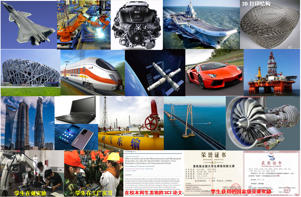 近年来,本专业本科生从大二就有机会参加到科研团队,以第一作者发表SCI论文、申请发明专利的人数逐年升高。在挑战杯、创青春、互联网+、iCAN国际创新创业大赛、全国大学生金相技能大赛、全国大学生焊接创新大赛、中国大学生铸造工艺设计大赛等竞赛中屡获佳绩。近五年来,已经累计获得国家级及省部级奖励150余项。