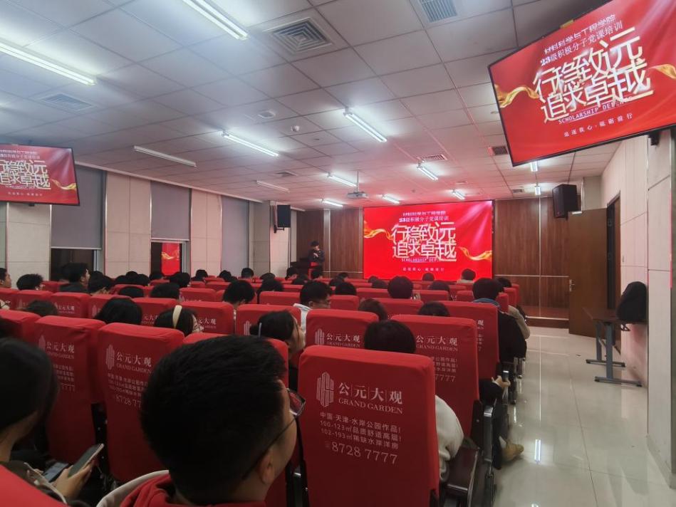 2024年11月7日晚18:30,yl23455永利集团2024-2025年秋季学期党课培训第三讲在机材楼514报告厅开展。本次党课以“行稳致远,追求卓越”为主题,邀请了优秀学生代表,材料学院本科生何子杰担任主讲人,学院预备党员、发展对象、积极分子近百人参会。