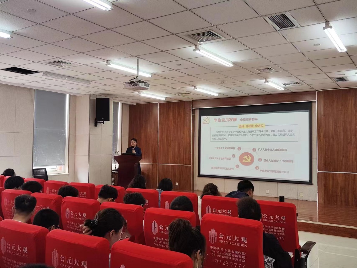 2023年5月6日下午2:00,校党委组织部正科级组织员孙冬雪以“端正入党动机,争做合格党员”—学生党员发展与教育管理为主题为我院学生支部书记及入党积极分子百余人讲授党课,以促进同学们端正入党动机,不忘初心、全心全意为人民服务。党课由学院组织员杨璐一主持。