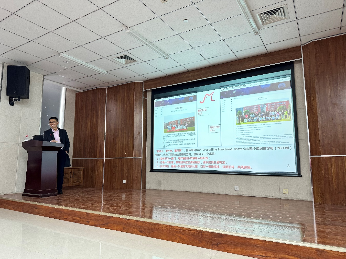 王军强研究员向学院师生介绍了近年来课题组围绕非晶合金亚稳特征的调控及其对性能的影响规律和机制方面的研究进展。此外还分享了自己学术生涯的心得经验,鼓励大家注意团队协作、面对困难时采取科学的排解方式。