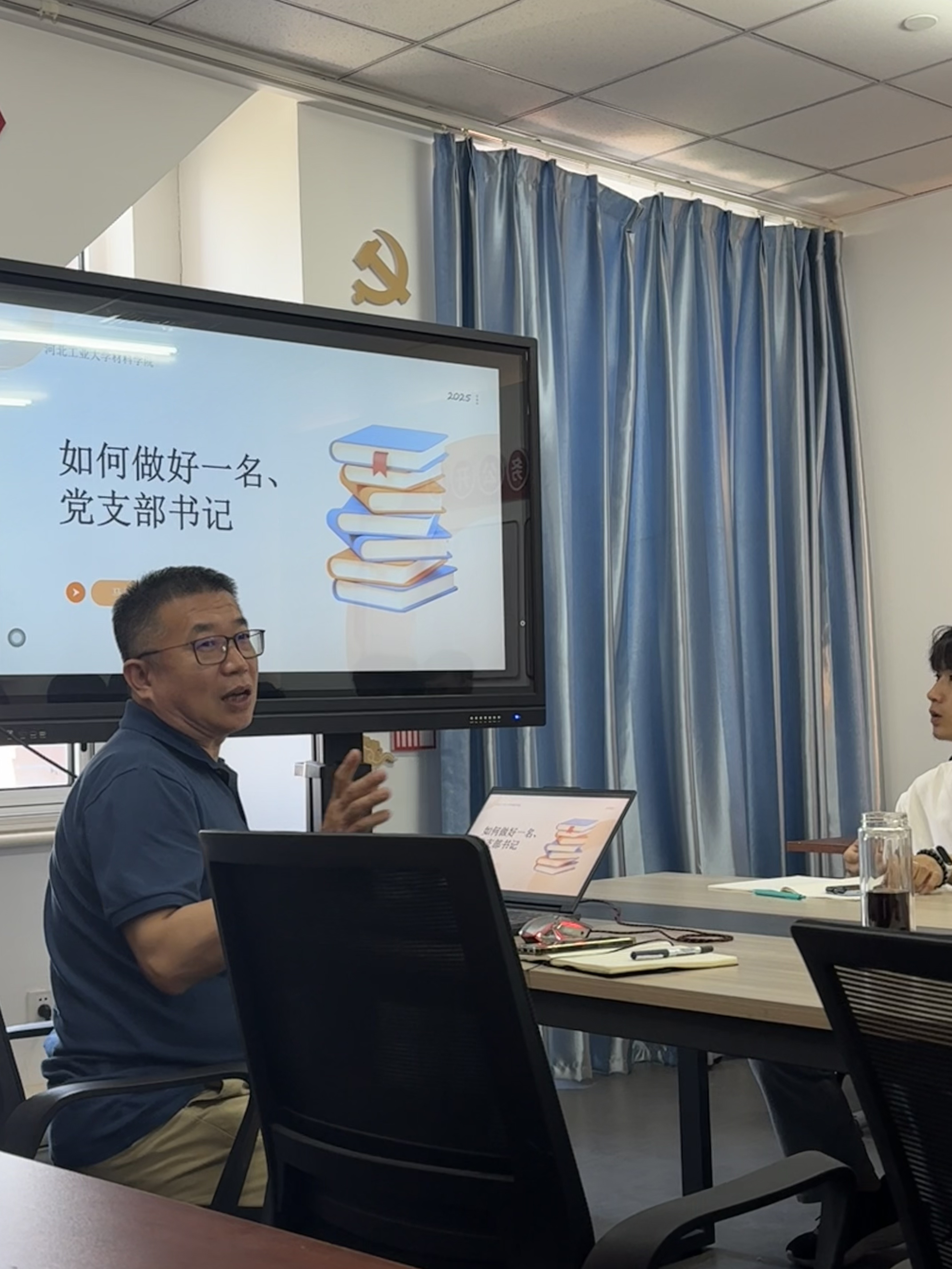 2025年6月5日下午两点,yl23455永利集团党委书记马岱、党委副书记兼副院长王建昆、组织员杨璐一为材料学院研究生党支部及本科生党支部书记及委员开展业务培训。会议内容主要围绕党支部工作手册的维护、大学生党支部书记基本工作要求以及如何做好一名党支部书记召开。