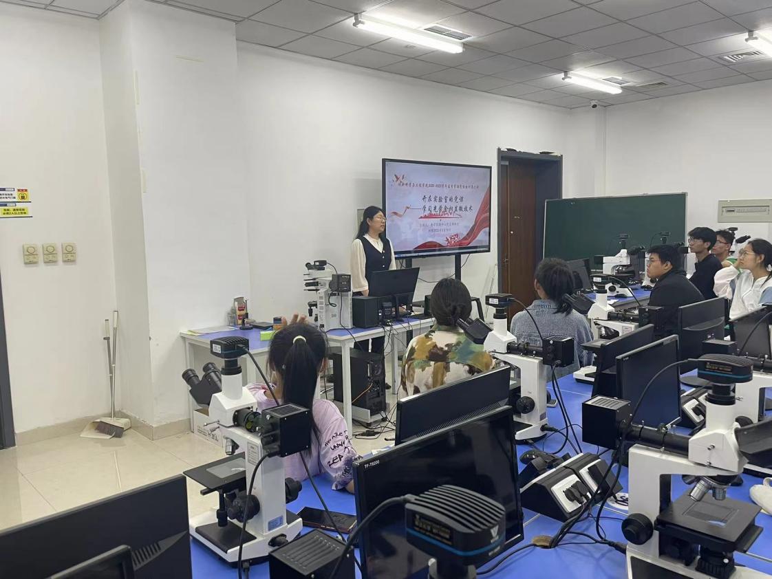 2023年5月19日下午2:00,教学实验中心党支部书记刘哲以“开在实验室的党课——学习光学金相显微技术”为题为我院2022级30名本科积极分子讲授党课,与以往党课不同的是,今天的党课更多的需要同学们进行动手操作。党课由2022级辅导员王珺主持。