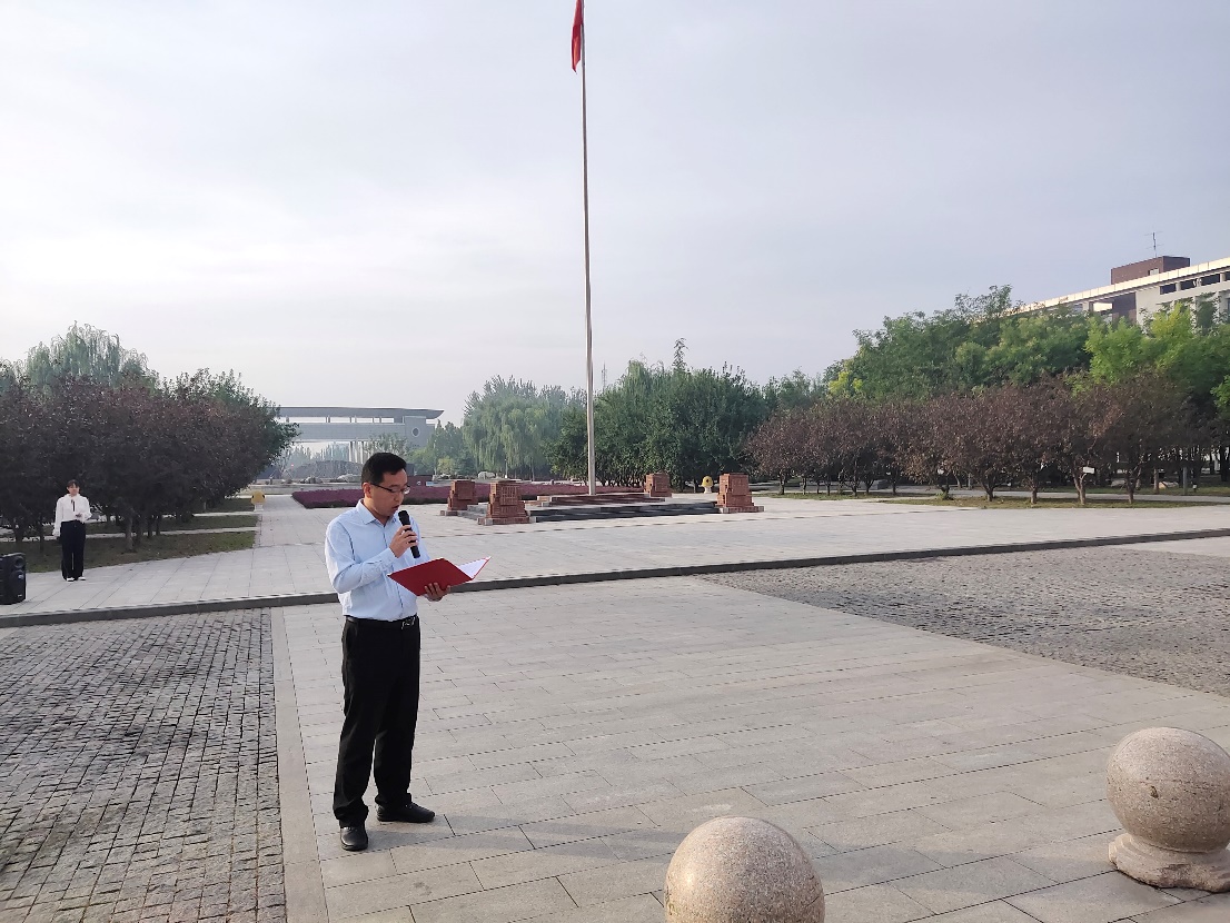 升旗结束后,学院党委书记赵庚进行讲话。赵庚在讲话中说到,今年是中华人民共和国成立74周年,今年的9月30日是我国设立的第10个烈士纪念日,并借此呼吁同学们共同缅怀为新中国成立、民族独立而牺牲的烈士们;同时,今年是学校建校120周年,回顾了学校的发展历程,并向在此过程中辛勤付出的老师、同学表示感谢。最后,赵庚对全体新生寄语。希望全体材料学子坚定理想信念,不断追求知识与真理,努力成为有担当、有责任感的人才。在学习生活中弘扬“勤慎公忠”的校训精神,传承“兴工报国”的办学传统,彰显“工学并举”的办学特色,为学校添光添彩,为社会贡献力量。