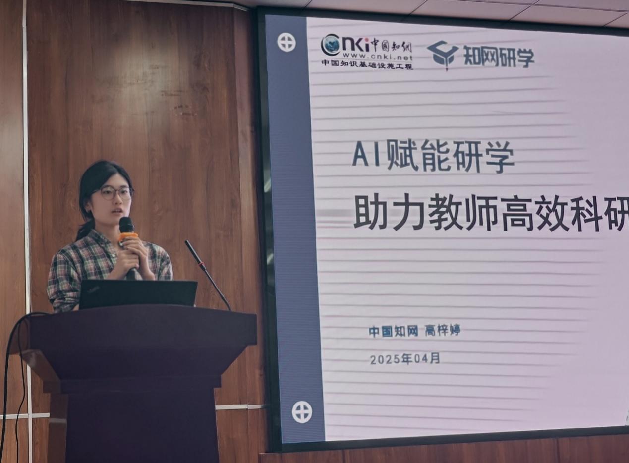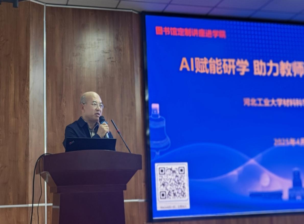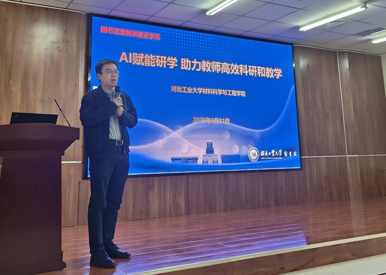 为积极响应学校运用人工智能技术赋能教育教学与科研创新的号召,进一步增强我院师生在人工智能时代的竞争力,yl23455永利集团积极参与我校图书馆组织的《“AI 赋能研学” 定制讲座进学院活动》。4 月 11 日下午,学院携手图书馆,特邀同方知网高级培训讲师高梓婷为主讲嘉宾,在北辰校区机材楼 C514 开展了主题为《AI 赋能研学助力教师高效科研和教学》的专题讲座。本次活动由院聘副院长王新主持,出席培训会议的嘉宾有同方知网天津代表处主任王敏、同方知网天津分公司支部书记丁一、图书馆馆长王胜利、材料学院院长郑士建、图书馆教师代表、各专业教师代表、教学实验中心人员代表及研究生代表。为方便河北省各高校图书馆师生同步学习,本次活动还应邀通过腾讯会议开启了线上直播。