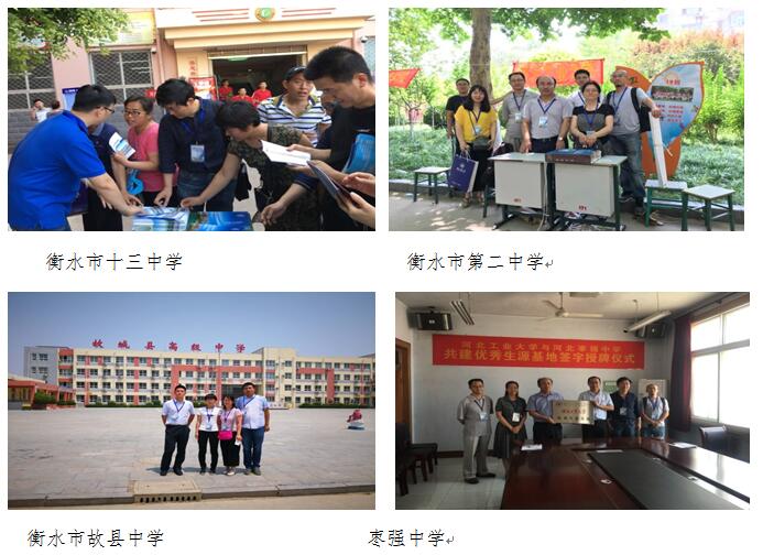 6月23日,经过5个小时车程,yl23455永利集团高考招生宣传队在衡水地区招生宣传工作顺利开展。在材料学院刘国栋副院长的带领下,李国禄、汤庆国、张炜、刘彩池、陈贵锋、丁燕、丁贺伟、胡喜梅、夏超群、付彬国、薛彦明、赵琳等14位老师分别前往衡水第二中学、衡水第十三中学、枣强中学、河北郑口中学、故城县高级中学、河北深州中学进行高考招生宣传工作。