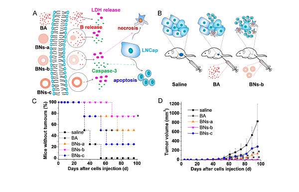 近日,yl23455永利集团张军老师与日本国立材料物质研究所李霞研究员和Golberg教授为共同通讯作者,在Nature子刊《Nature Communications》上发表题为:《中空氮化硼纳米球作为B元素储藏室用于前列腺癌肿瘤治疗》的研究论文。