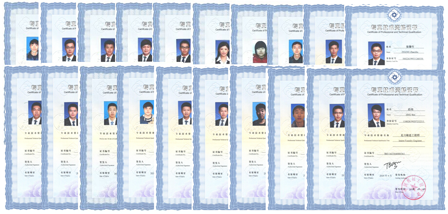 100%取得“见习铸造工程师”技术资格证书