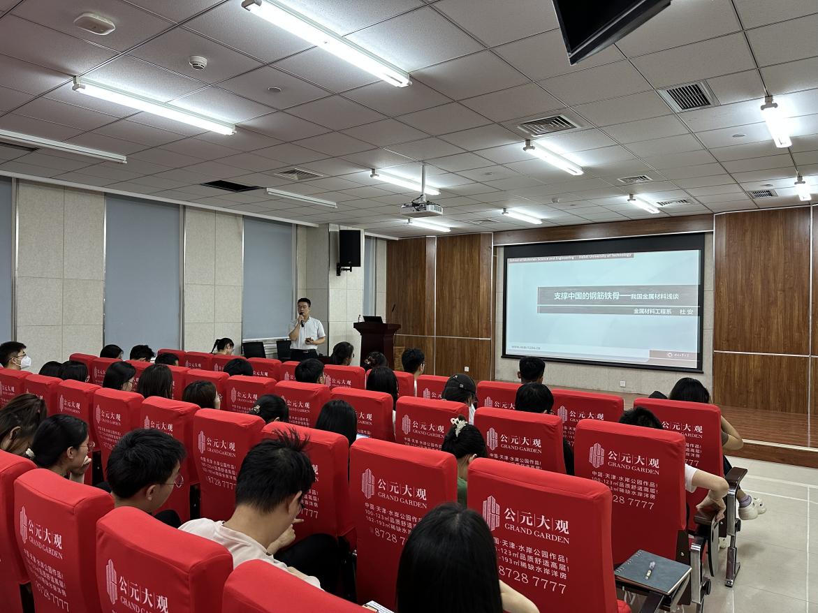 2023年5月12日下午15:30,天津市第十四届青年教师教学比赛工科组一等奖获得者、金属材料工程系党支部书记杜安以”支撑中国的钢筋铁骨——我国金属材料浅谈”为题为我院入党积极分子百余人讲授党课。党课由学院组织员杨璐一主持。