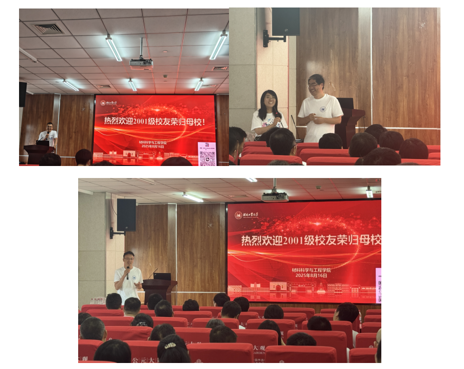 8月16日,材料学院2001级60余名校友从各地重返母校,共庆毕业二十周年。学院正处级辅导员张雪莹、校人事处副处长王志坤(曾任2001级学生辅导员)、学院副院长夏兴川(同为材料012班校友)出席了本次盛会。