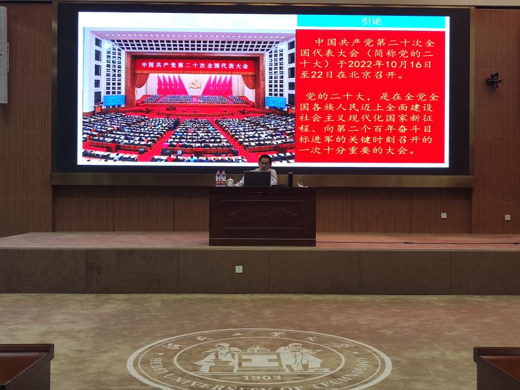 2023年5月26日下午2:00,学院邀请到中共天津市委党校教授石学峰以“深入学习贯彻习近平新时代中国特色社会主义思想”为主题,为我院预备党员、发展对象、积极分子代表200余人讲授党课。党课由学院正处级辅导员张雪莹主持。